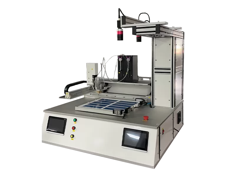 It features an independent five-axis motion system, allowing flexible programming for linear, circular, or array-type spotting patterns. The system can automatically adjust according to different target positions, and post-spotting, the CCD system automatically inspects and verifies the dispensing results.
